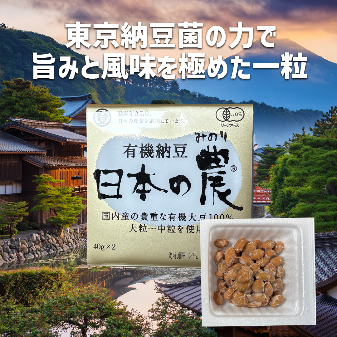 まとめ:「日本の農(みのり)」は、国産大豆100%・無農薬特別栽培 × 独自の東京納豆菌が生む、雑味の少ない旨みと確かな安心。100g換算では一般的な納豆の3〜5倍ですが、素材と製法の価値で選ぶ一品です。